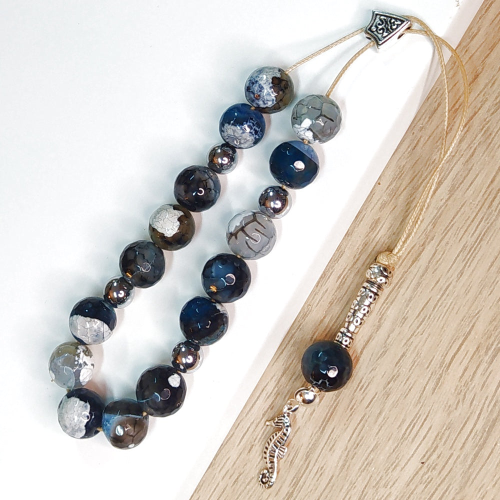 Κομπολόι ημιπολύτιμων λίθων φυσικού Αχάτη και Αιματίτη / Κωδικός Προϊόντος: Α118
