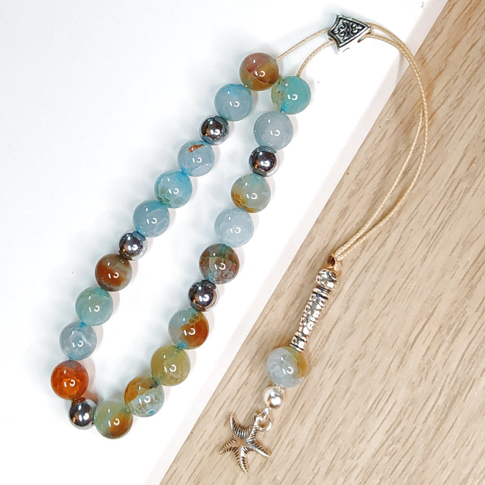 Κομπολόι ημιπολύτιμων λίθων φυσικού Αχάτη και Αιματίτη / Κωδικός Προϊόντος: Α148