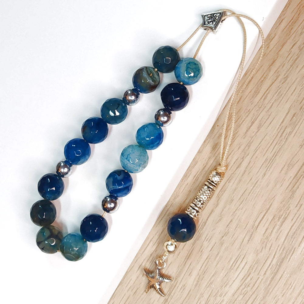 Κομπολόι ημιπολύτιμων λίθων φυσικού Αχάτη και Αιματίτη / Κωδικός Προϊόντος: Α161