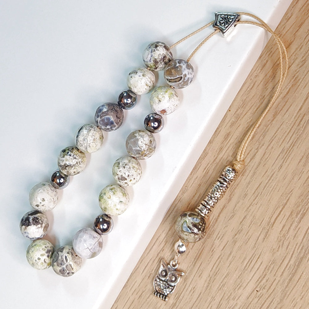 Κομπολόι ημιπολύτιμων λίθων φυσικού Αχάτη κρακελέ και Αιματίτη / Κωδικός Προϊόντος: Α109