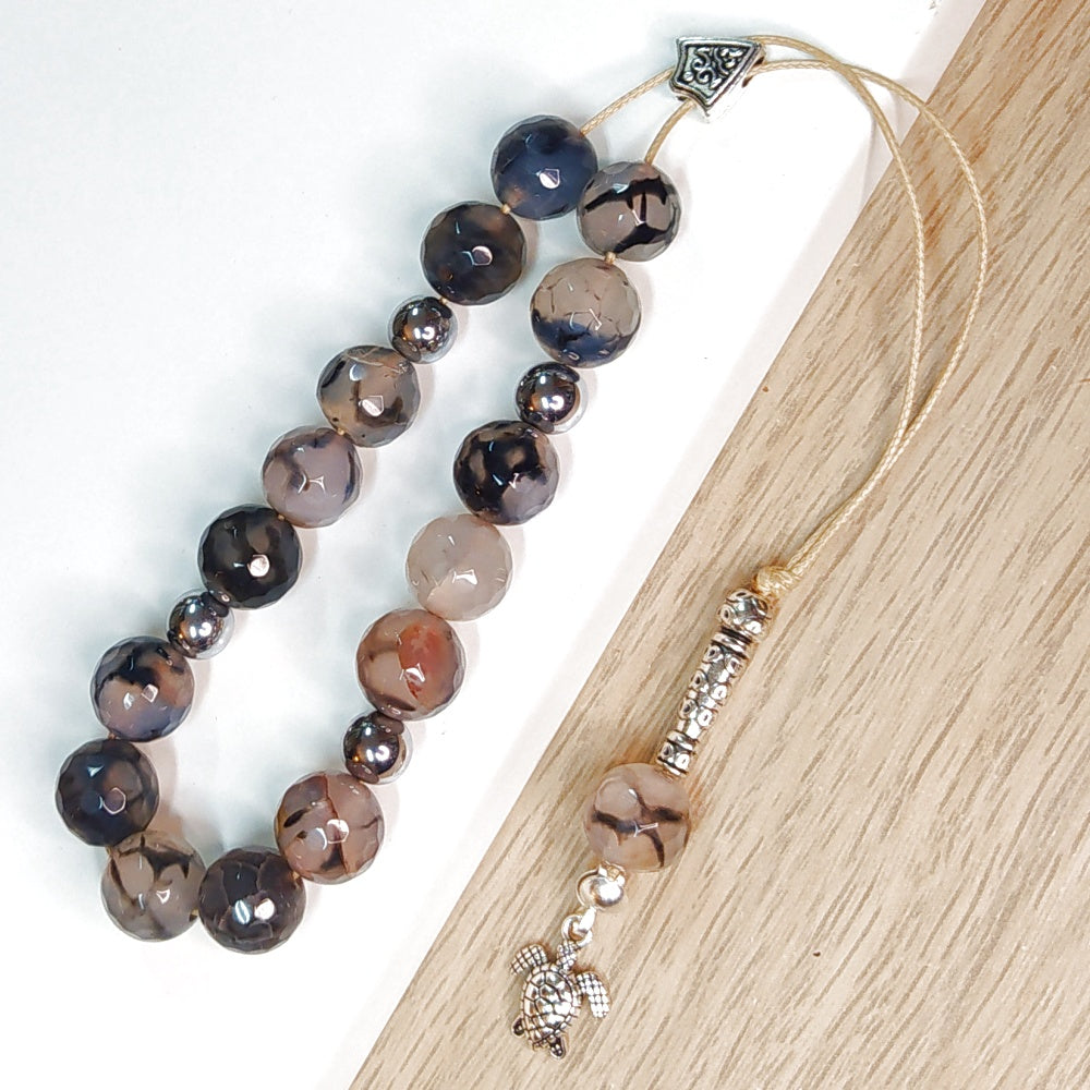 Κομπολόι ημιπολύτιμων λίθων φυσικού Αχάτη Dragon Veins και Αιματίτη / Κωδικός Προϊόντος: Α122