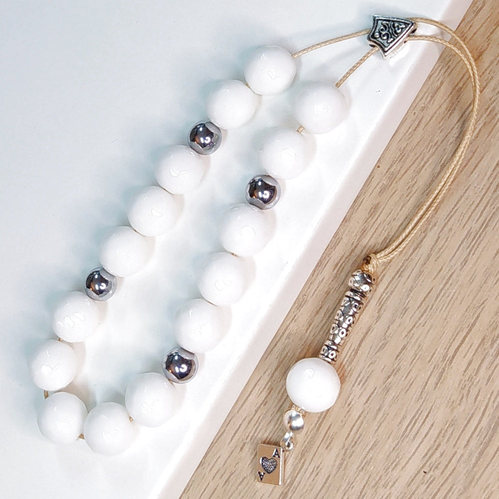 Κομπολόι ημιπολύτιμων λίθων φυσικού Λευκού Ίασπη και Αιματίτη / Κωδικός Προϊόντος: Α110