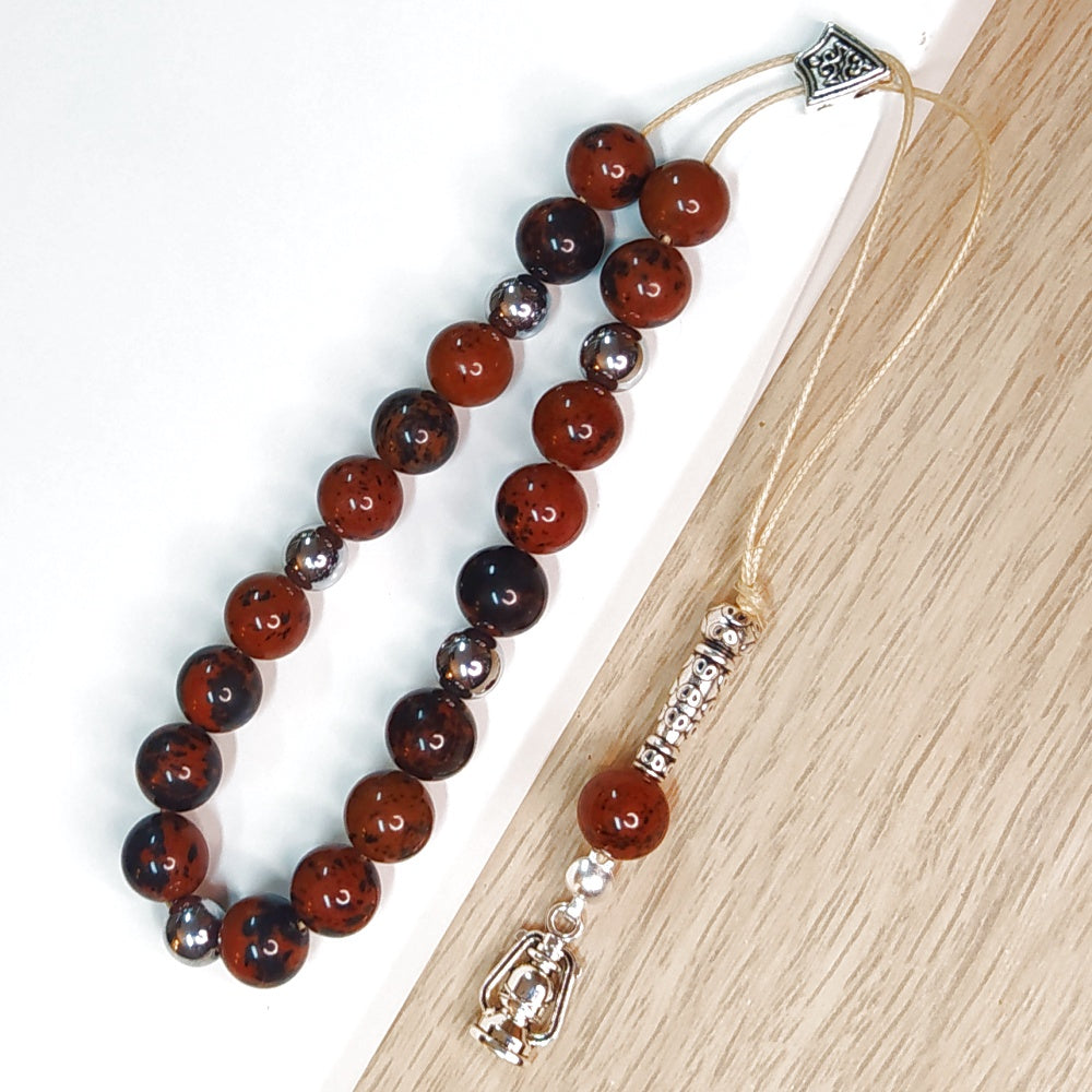 Κομπολόι ημιπολύτιμων λίθων φυσικού Μαόνι Οψιδιανού και Αιματίτη / Κωδικός Προϊόντος: Α158