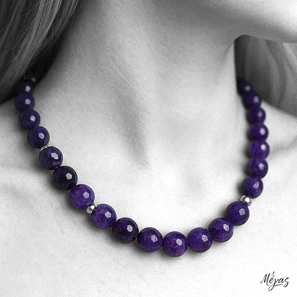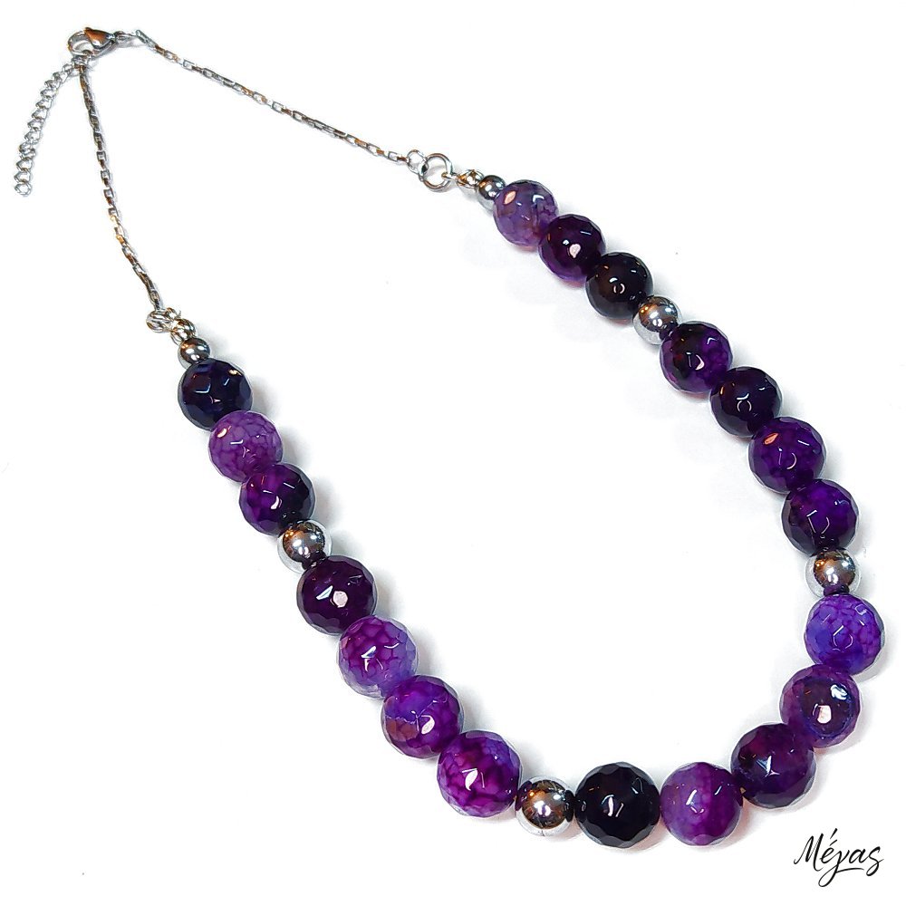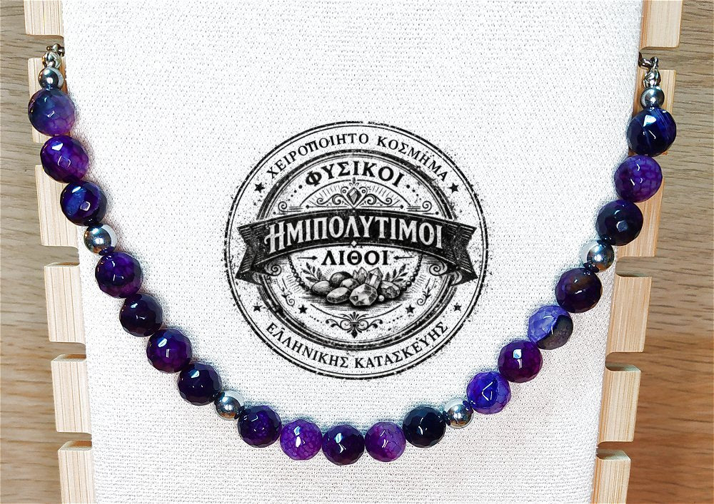 Κολιέ ημιπολύτιμων λίθων φυσικού Αμέθυστου και Αιματίτη / Κωδικός Προϊόντος: Ζ134
