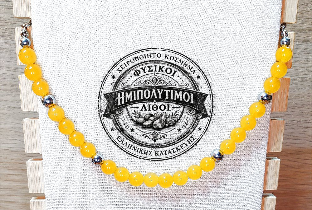 Κολιέ ημιπολύτιμων λίθων φυσικού Αχάτη Ηλιόδωρο και Αιματίτη / Κωδικός Προϊόντος: Ζ133