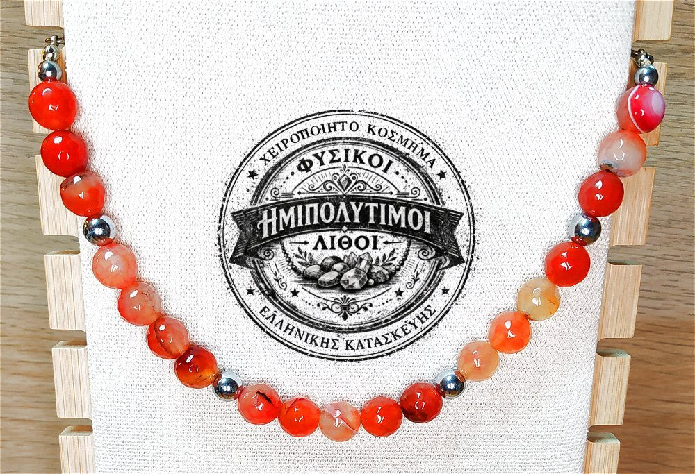 Κολιέ ημιπολύτιμων λίθων φυσικού Αχάτη και Αιματίτη / Κωδικός Προϊόντος: Ζ116