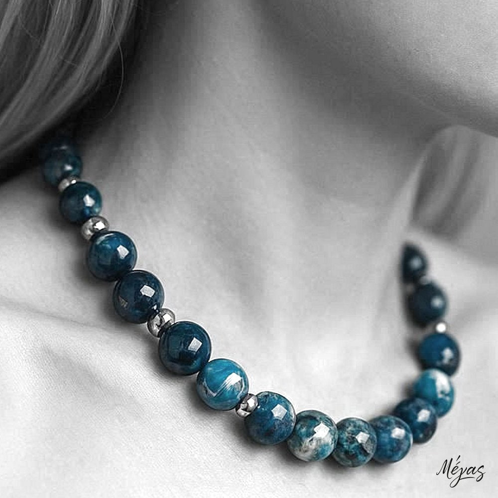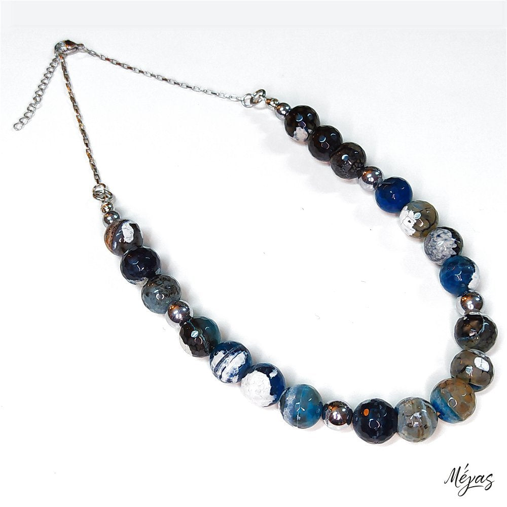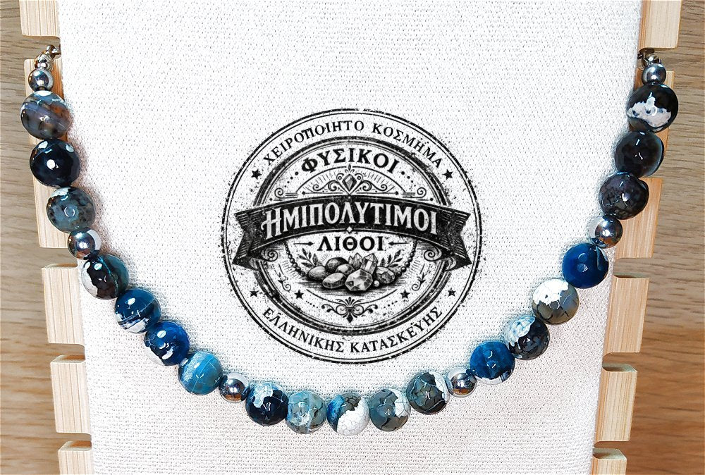 Κολιέ ημιπολύτιμων λίθων φυσικού Αχάτη και Αιματίτη / Κωδικός Προϊόντος: Ζ118