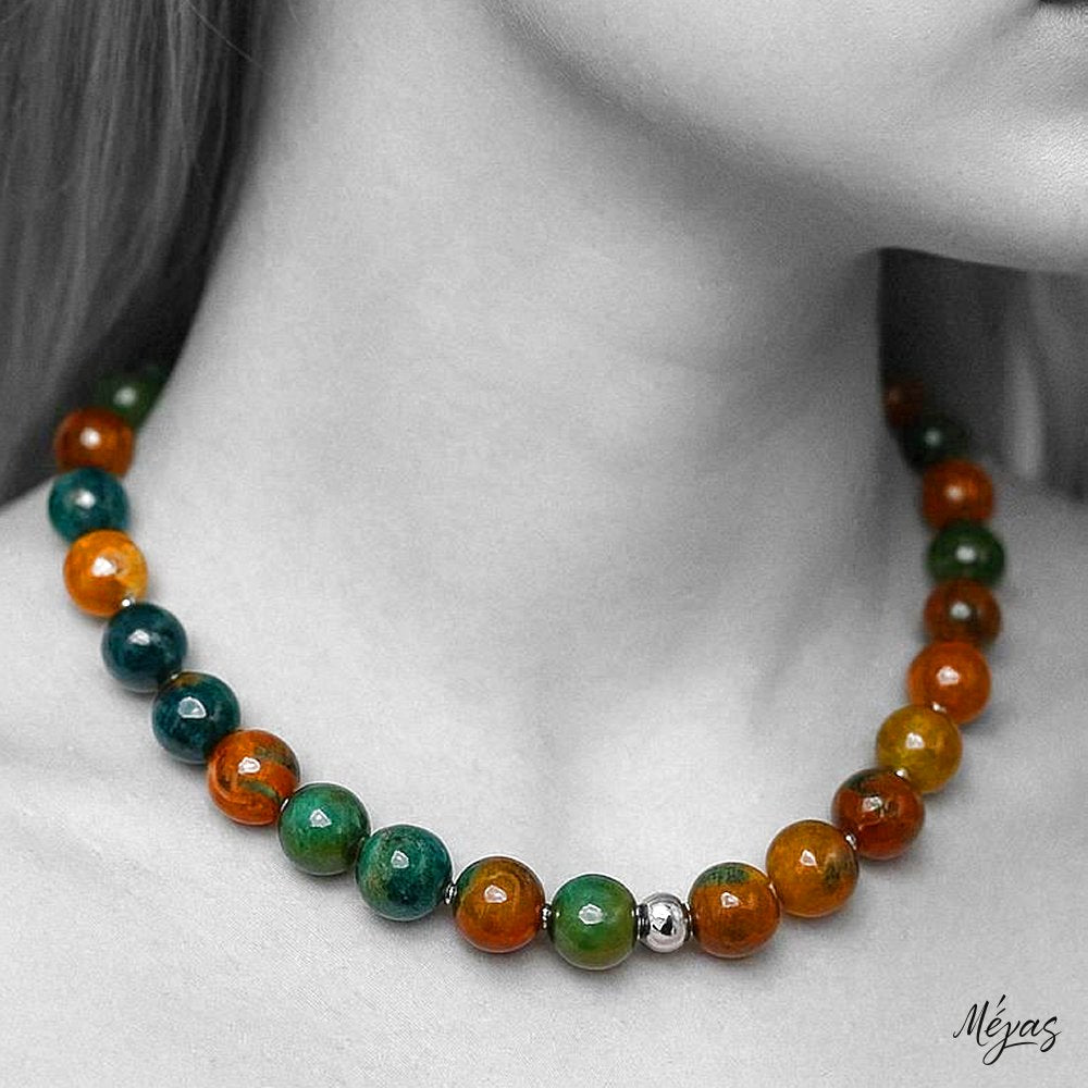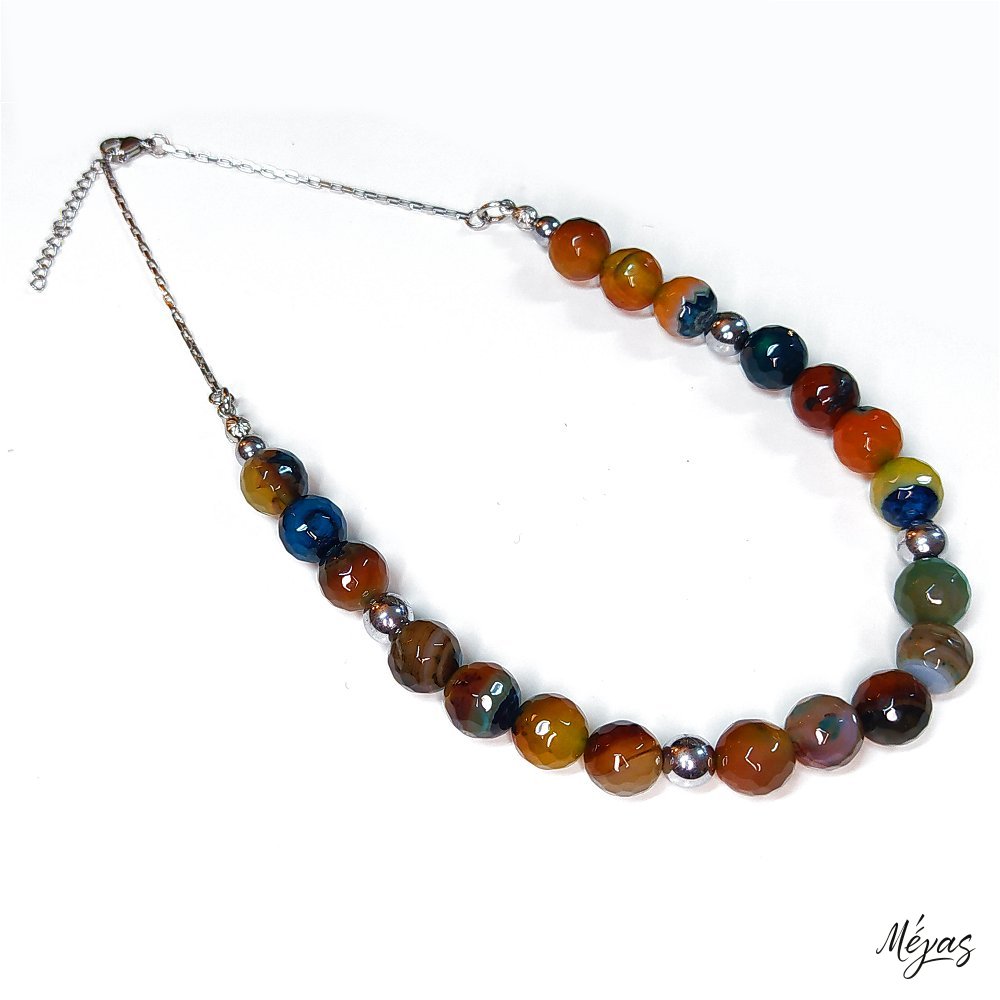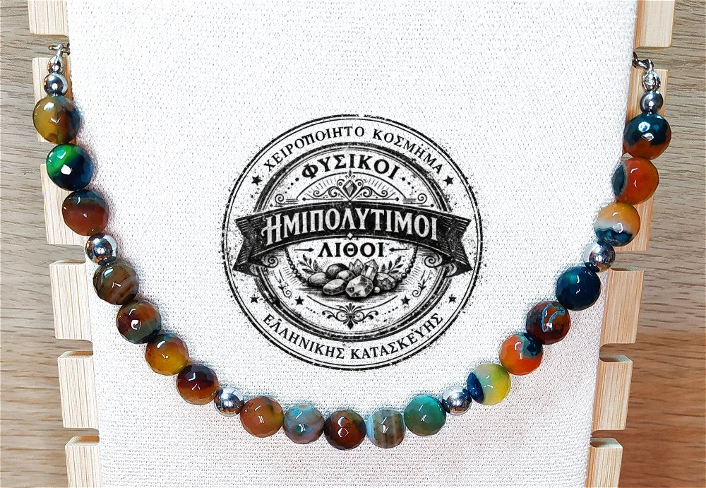 Κολιέ ημιπολύτιμων λίθων φυσικού Αχάτη και Αιματίτη / Κωδικός Προϊόντος: Ζ166
