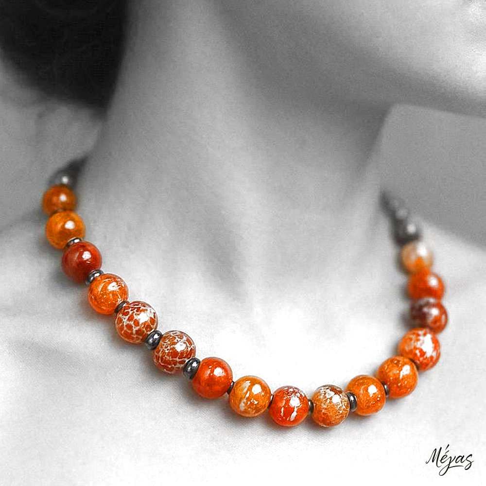 Κολιέ ημιπολύτιμων λίθων φυσικού Αχάτη κρακελέ και Αιματίτη / Κωδικός Προϊόντος: Ζ105