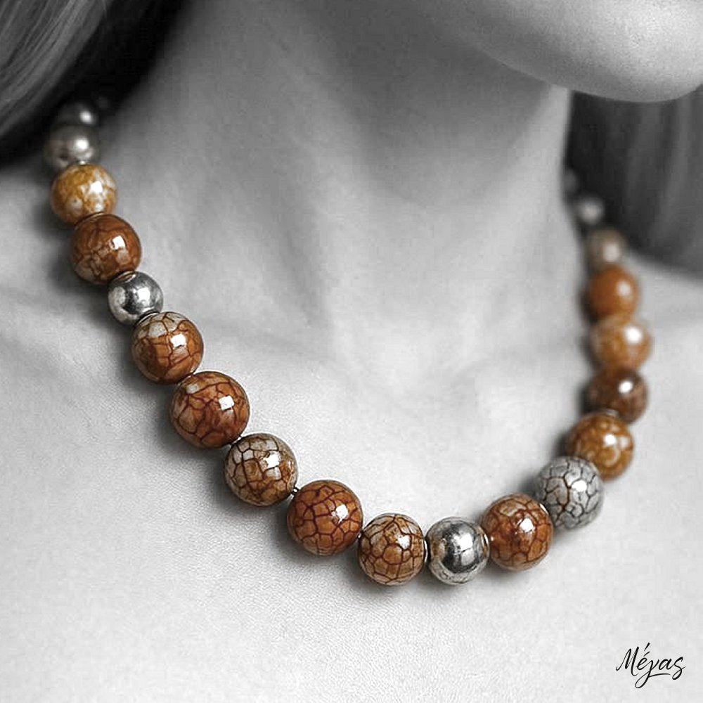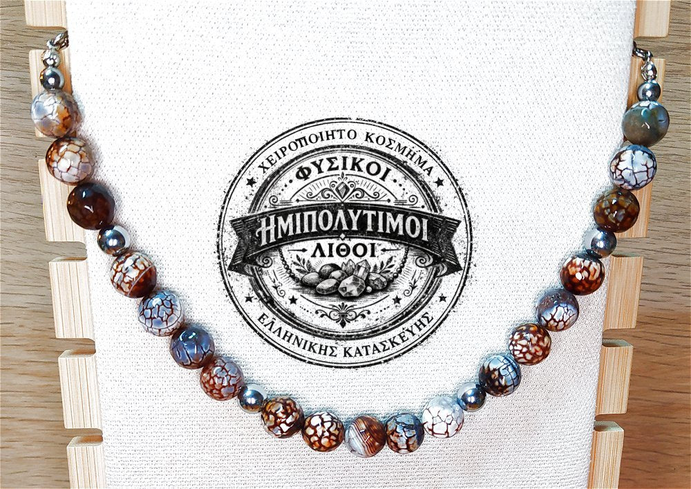 Κολιέ ημιπολύτιμων λίθων φυσικού Αχάτη Dragon Veins και Αιματίτη / Κωδικός Προϊόντος: Ζ121