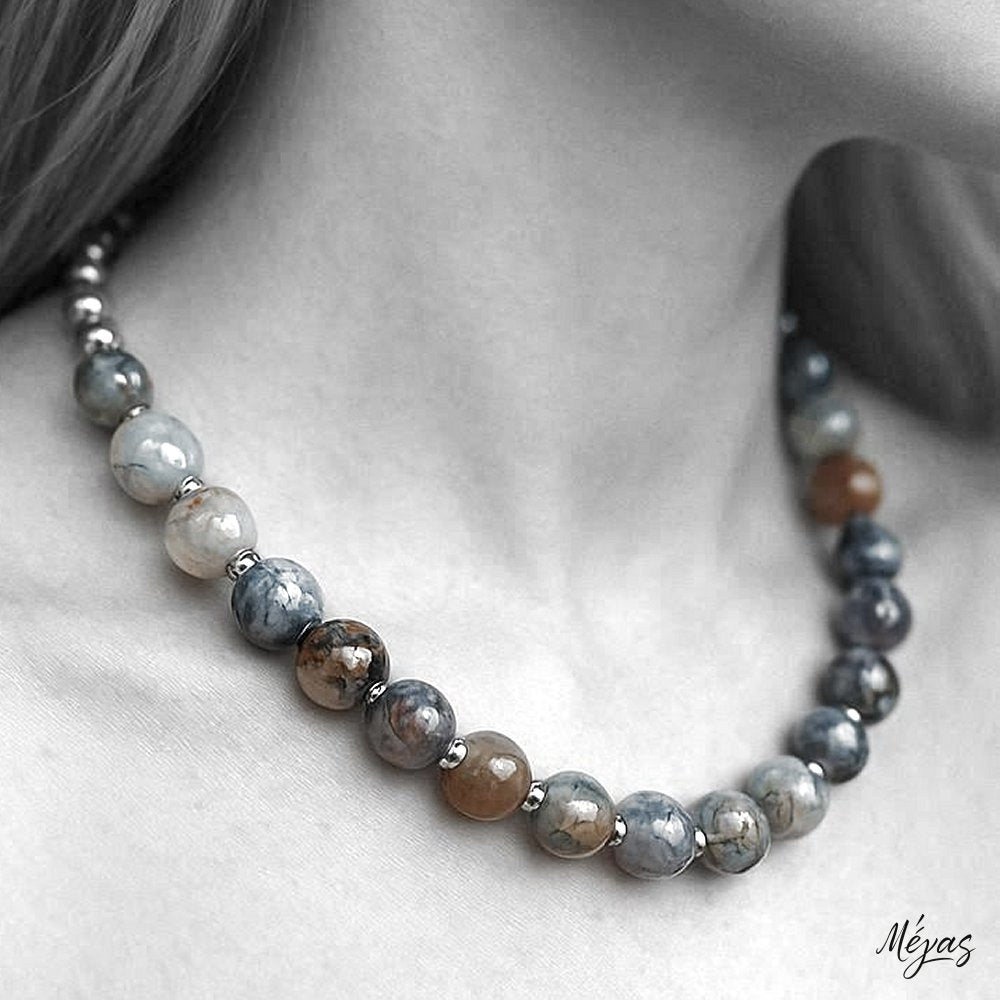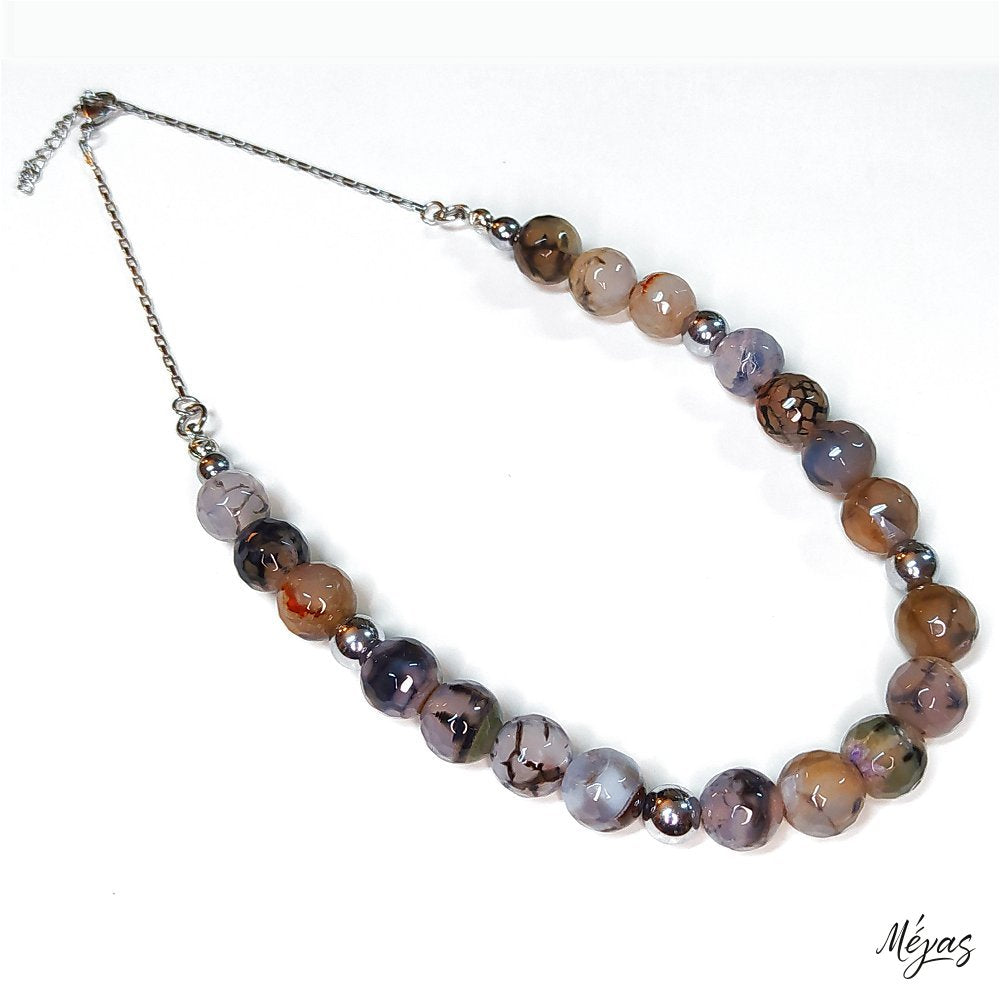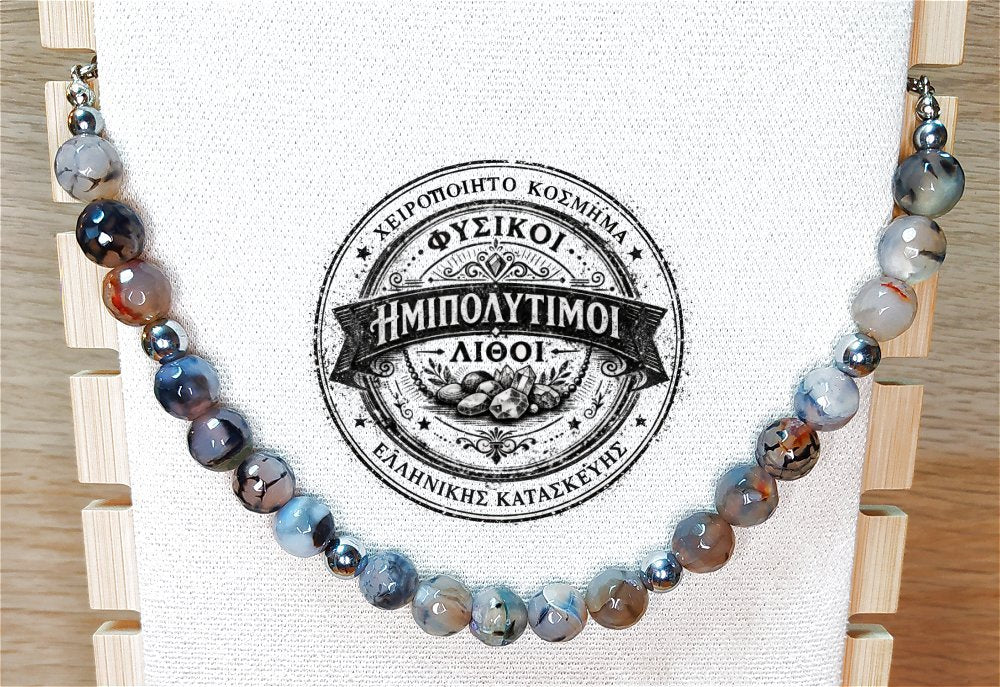 Κολιέ ημιπολύτιμων λίθων φυσικού Αχάτη Dragon Veins και Αιματίτη / Κωδικός Προϊόντος: Ζ122
