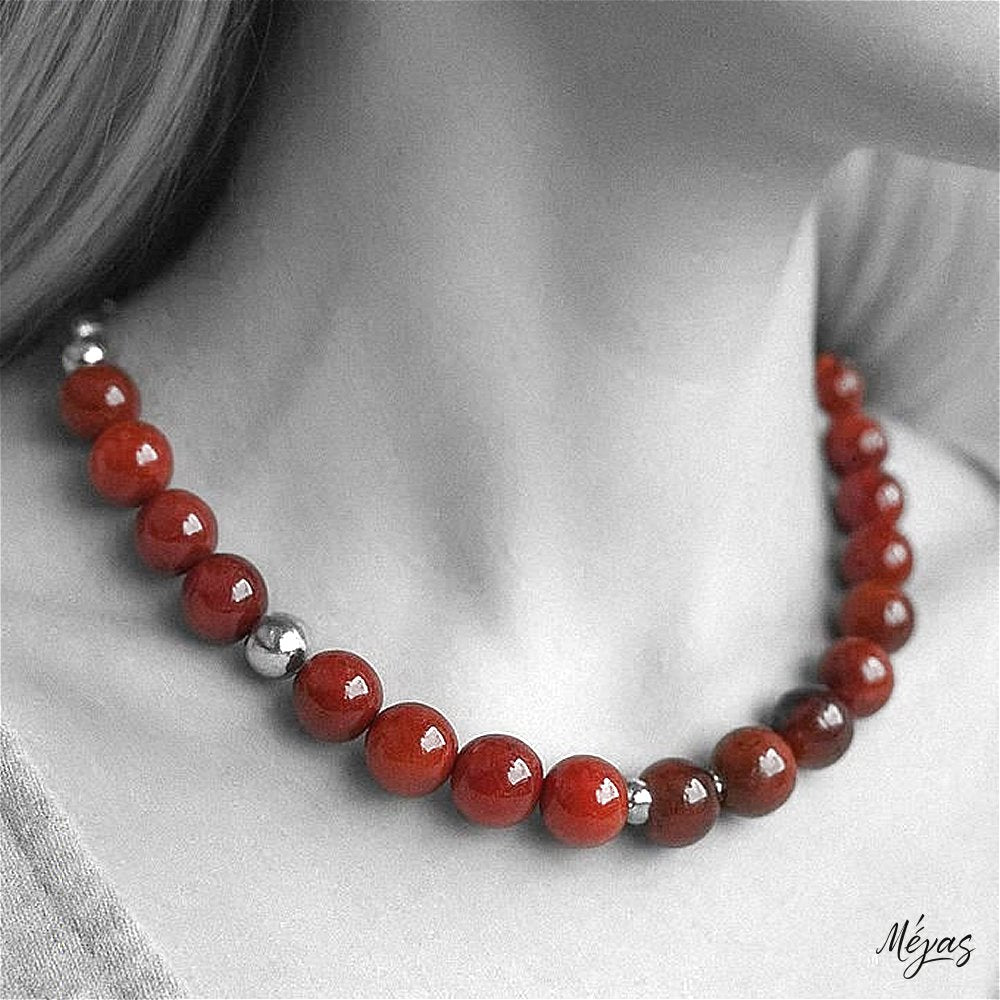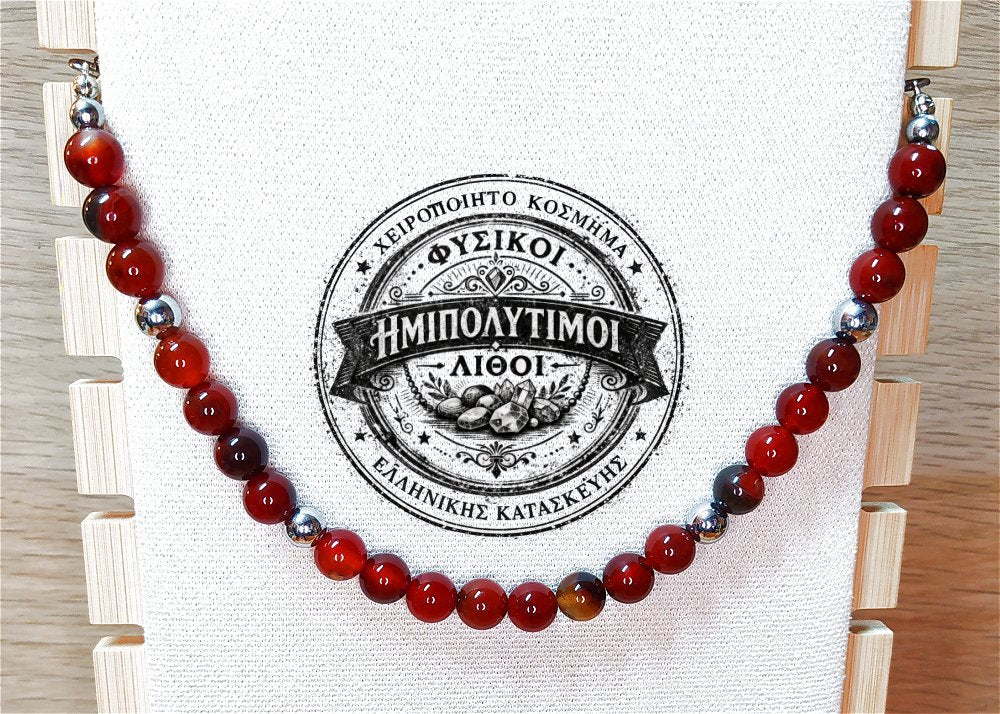 Κολιέ ημιπολύτιμων λίθων φυσικού Πύρινου Αχάτη και Αιματίτη / Κωδικός Προϊόντος: Ζ125