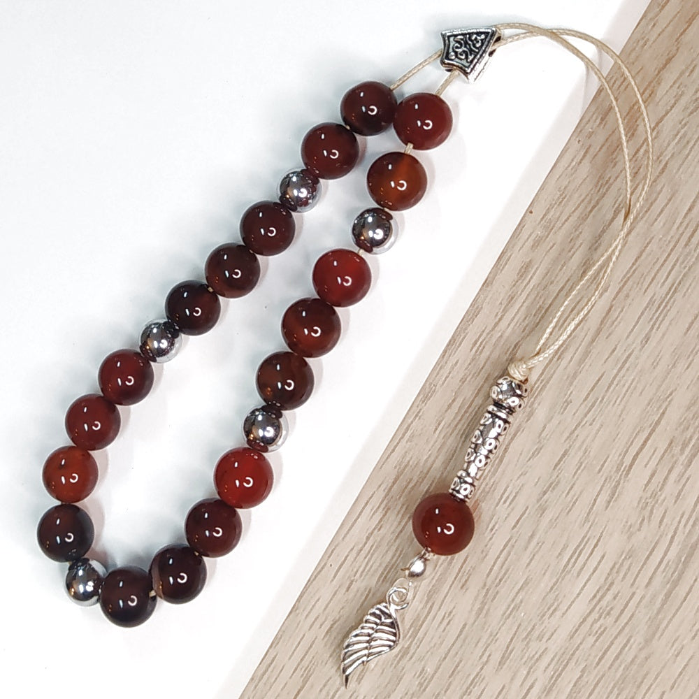 Κομπολόι ημιπολύτιμων λίθων φυσικού Πύρινου Αχάτη και Αιματίτη / Κωδικός Προϊόντος: Α125